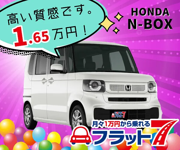 Aいいえ、割高にはなりません。契約期間中の税金やメンテナンス費用が含まれている為、ローンなどと比較すると割高ですが、リースは残価を設定しますのでその分が差し引かれます。そのため実際の月々は割高にはなりません。設定残価はリースアップ時の売却予定価格ですので、フラット7では、人気車種に絞って高い残価を設定しました。だから、安い月々払いが実現出来ているんです!